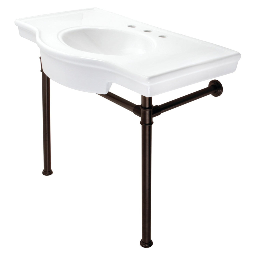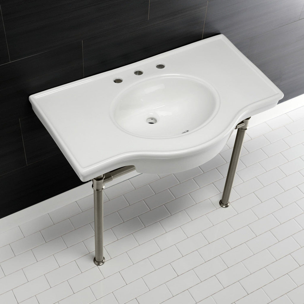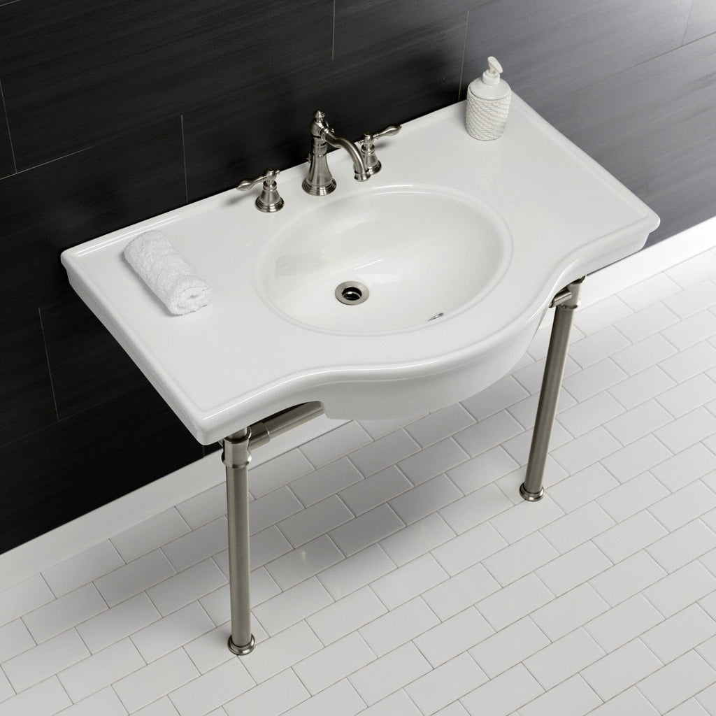 Templeton 37-Inch Ceramic Console Sink with Stainless Steel Legs (8-Inch, 3-Hole)