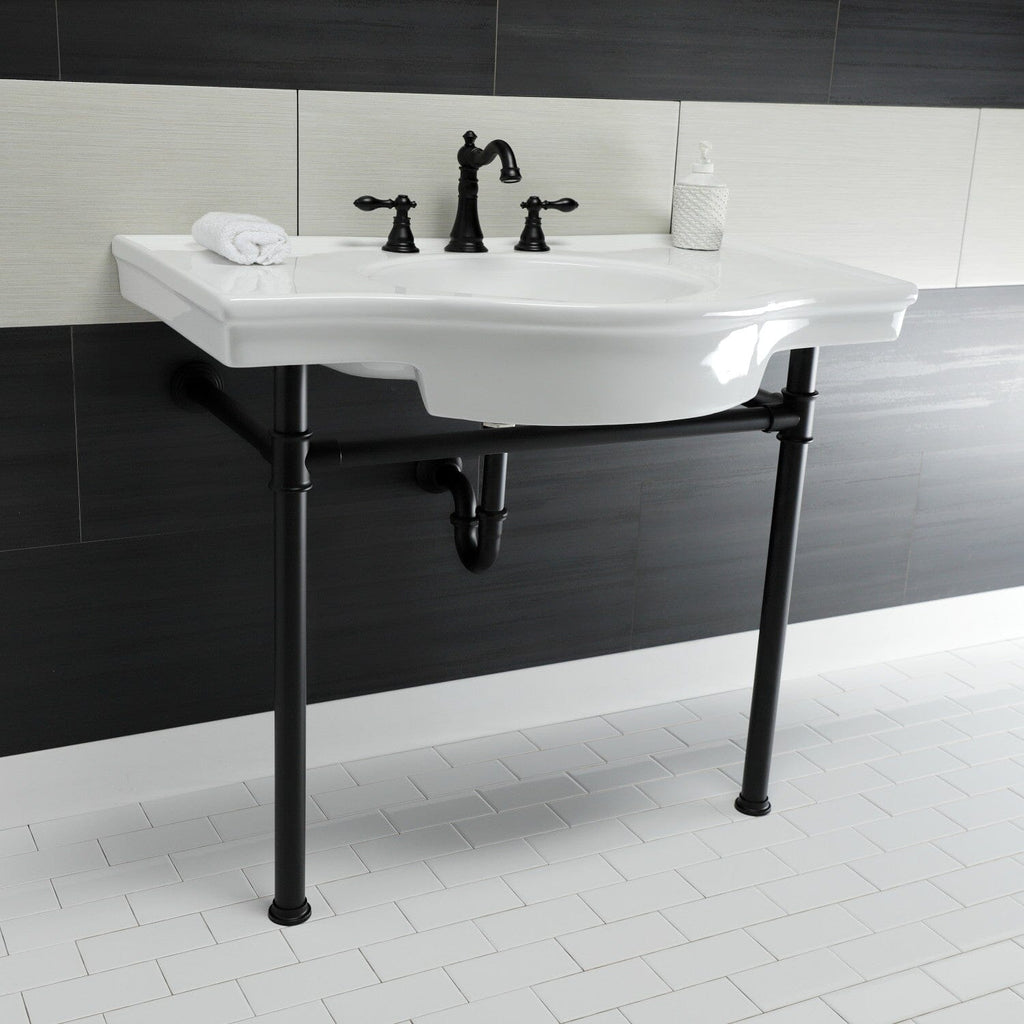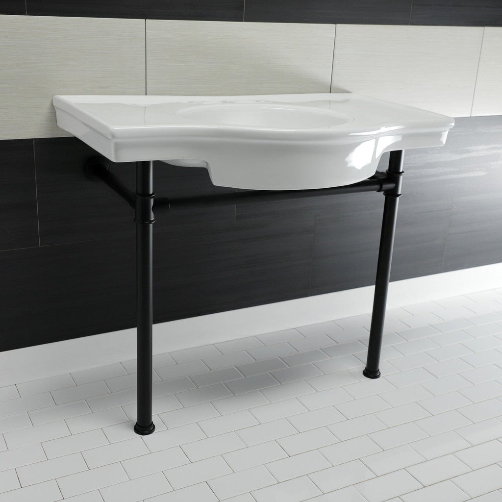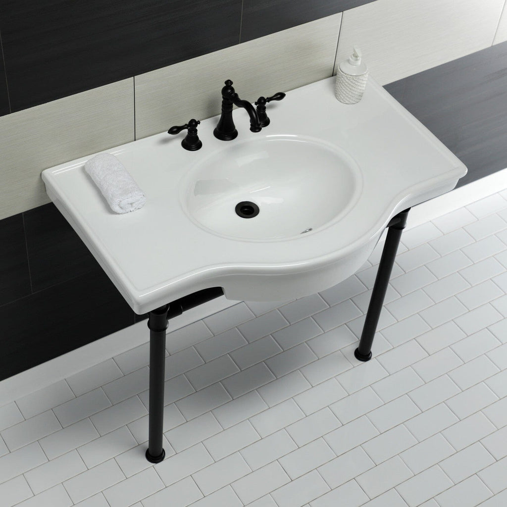 Templeton 37-Inch Ceramic Console Sink with Stainless Steel Legs (8-Inch, 3-Hole)