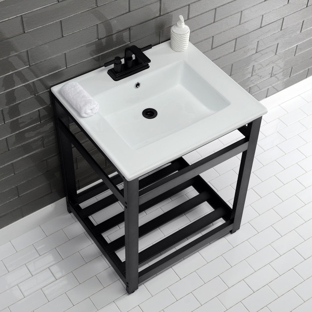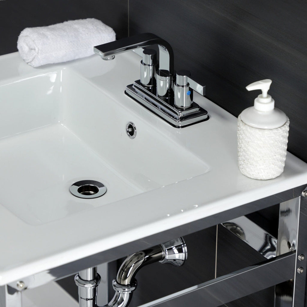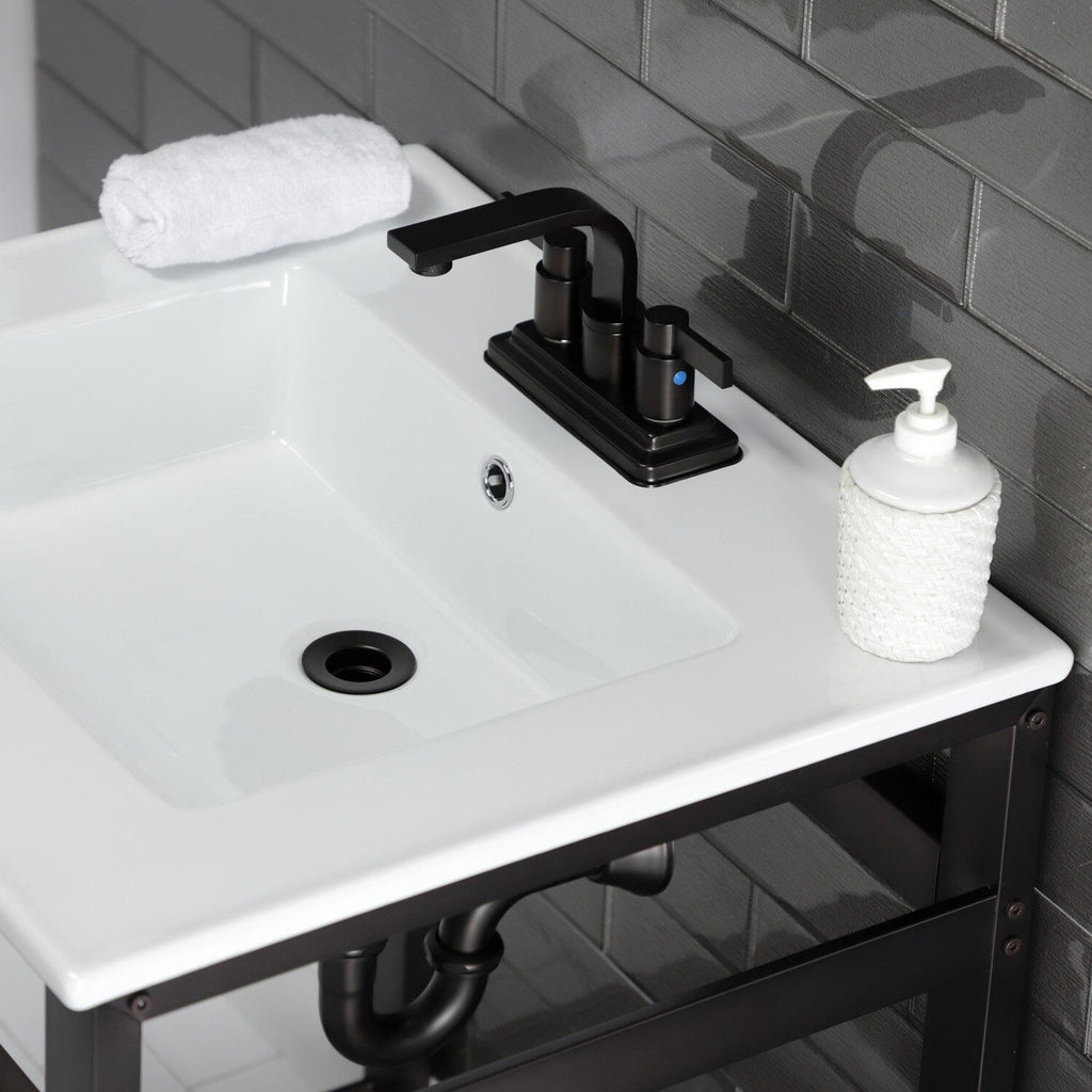 Quadras 25-Inch Ceramic Console Sink with Steel Base and Shelf (4-Inch, 3-Hole)