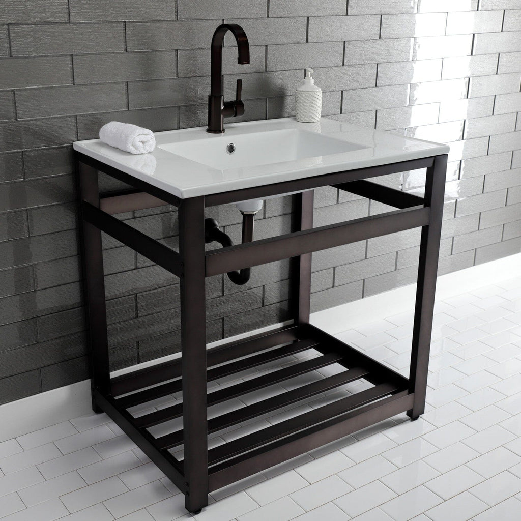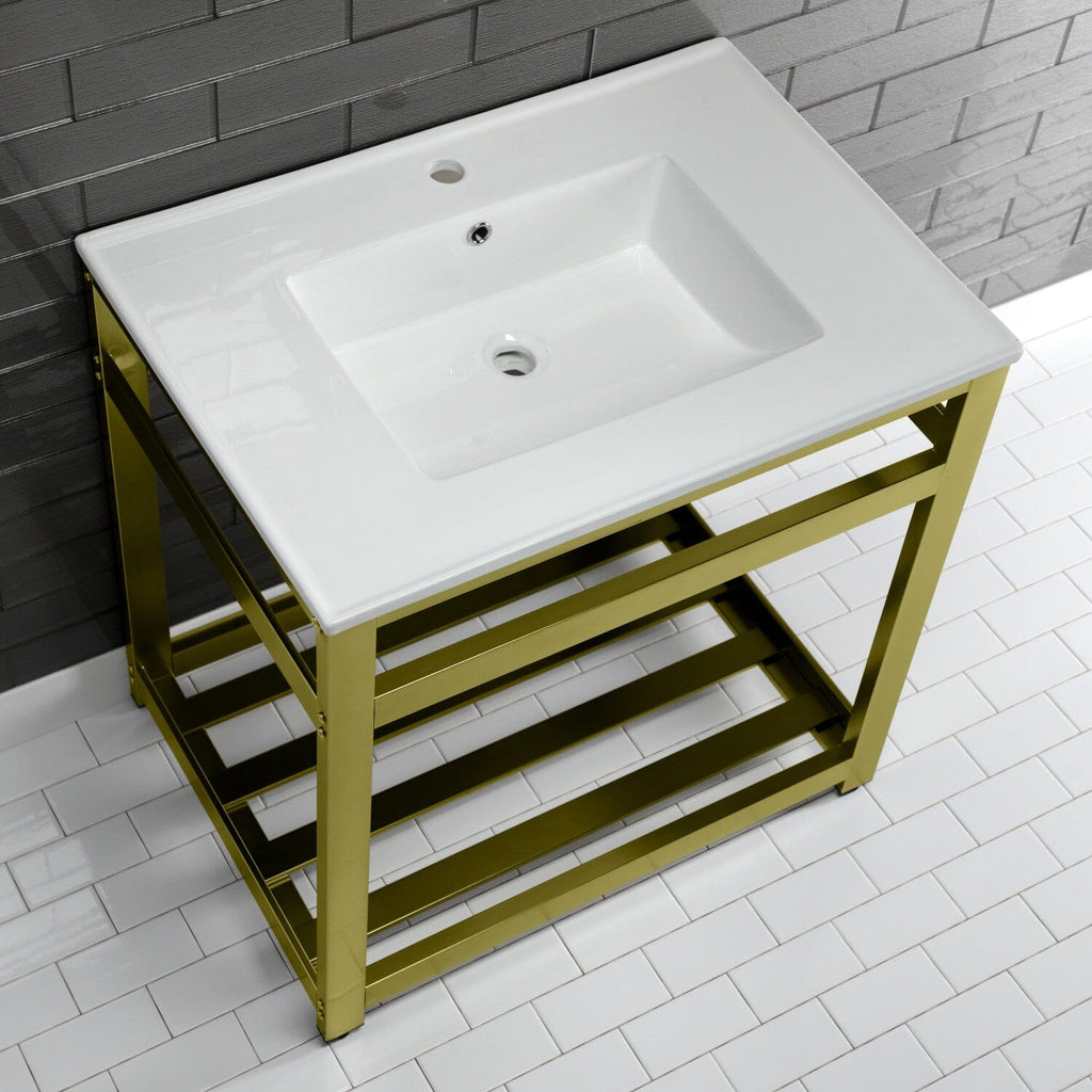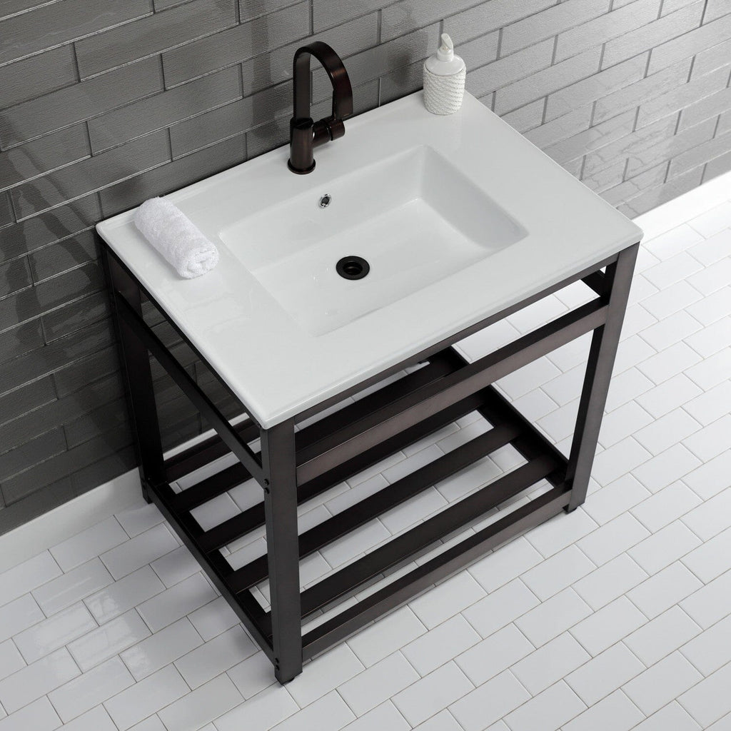 Quadras 31-Inch Ceramic Console Sink with Steel Base and Shelf (1-Hole)