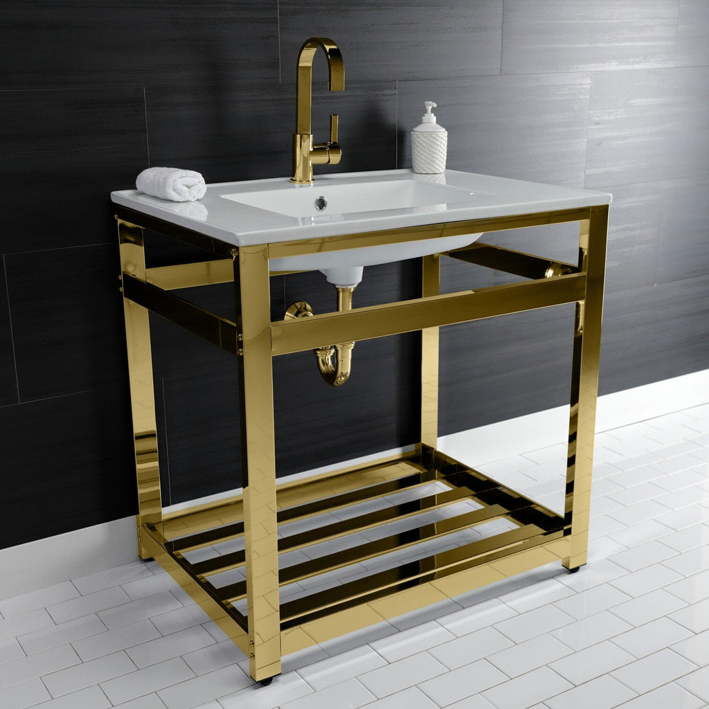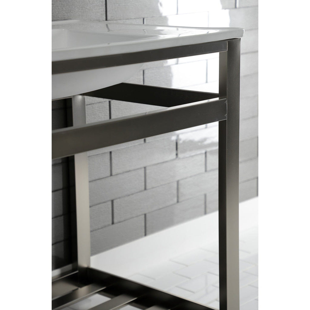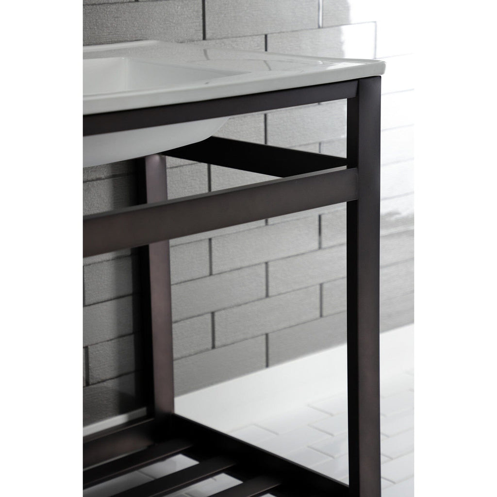 Quadras 31-Inch Ceramic Console Sink with Steel Base and Shelf (1-Hole)