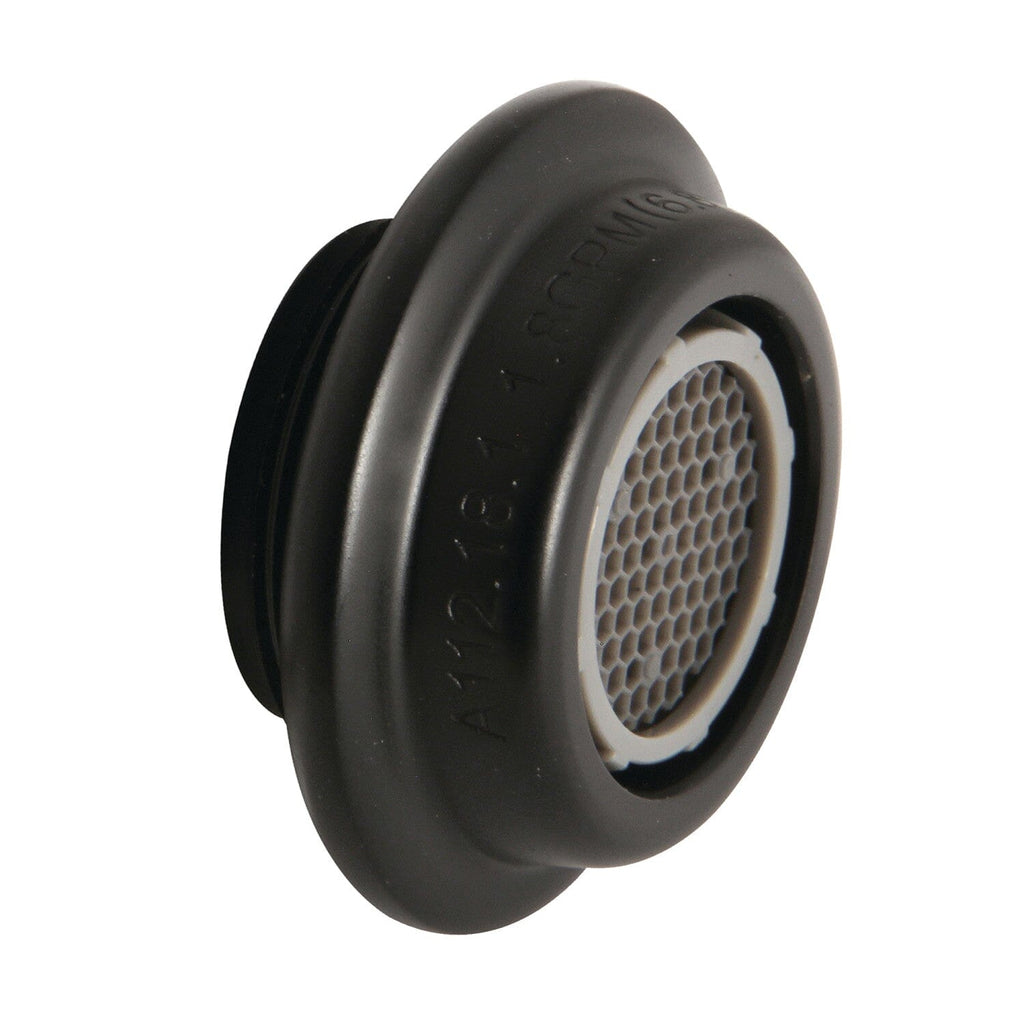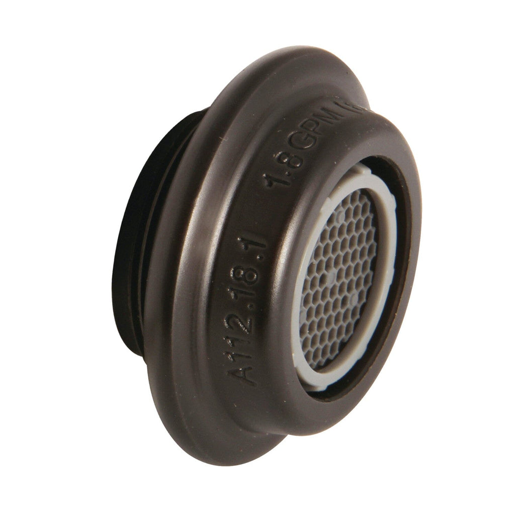 Installed at the ends of household faucets, aerators are designed with mesh screens to reduce splashing and dripping in sinks. A mixture of water and air is delivered while also helping to conserve water. This aerator's thread size: US male 15/16"-27 UNS connection. The water flow rate is 1.8 gallons per minute (GPM).